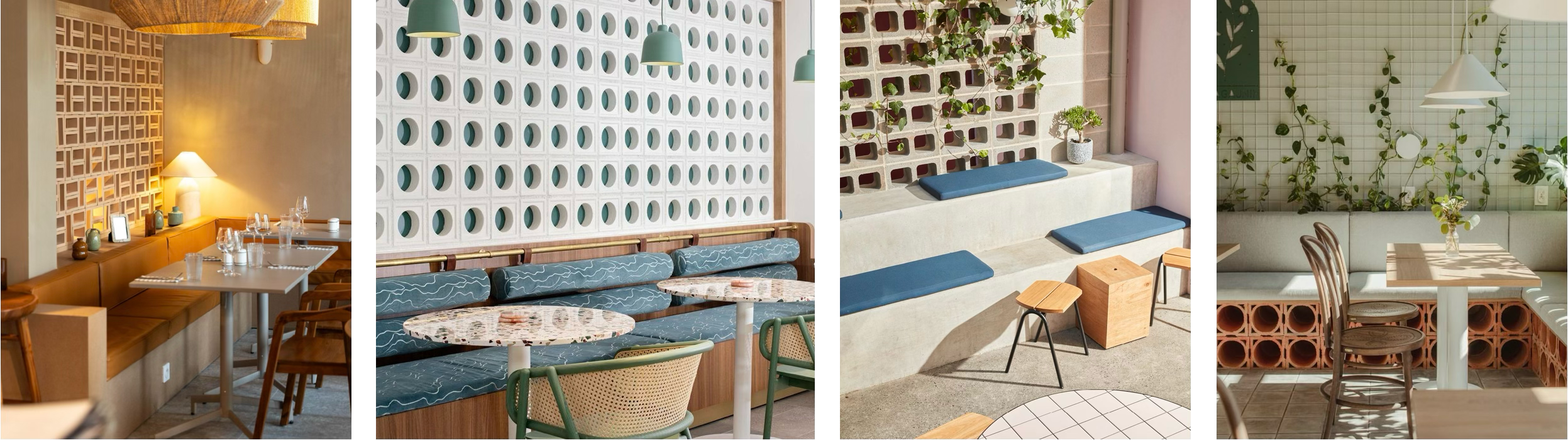 Arquitetura Tátil: Os cobogós serão parte da decoração do Regina Café. Eles trazem uma textura de luz e sombra tipicamente nossa, criando um fundo rico visualmente sem ser poluído. Vamos misturar materiais honestos: madeira, azulejos e elementos que tragam essa “brasilidade tátil”.